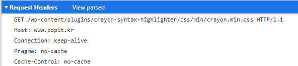 블로그 페이지 요청을 크롬 개발자도구로 본 모습이다.(cookie 부분은 지웠다) method가 :method:로 뜨는걸로 봐서는 HTTP/2를 사용중인것 같다(HTTP/1.1을 사용하면 아래의 사진과 같이 나온다)
