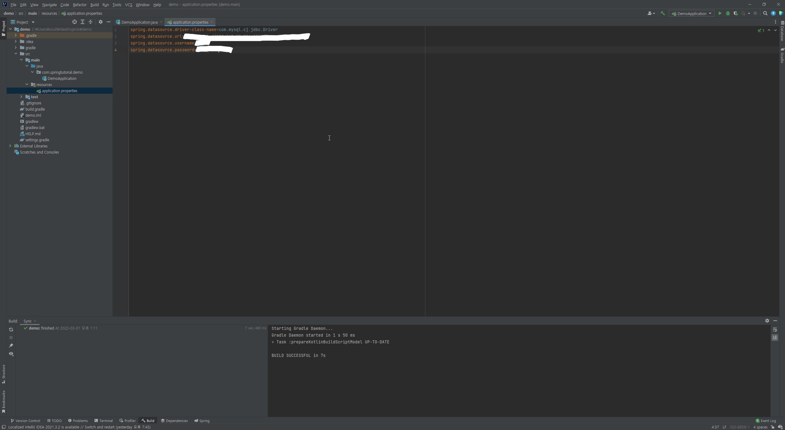 이후 spring batch 프로젝트의 application.properties에서 다음과 같이 데이터베이스 연결에 필요한 사항들을 입력한다.